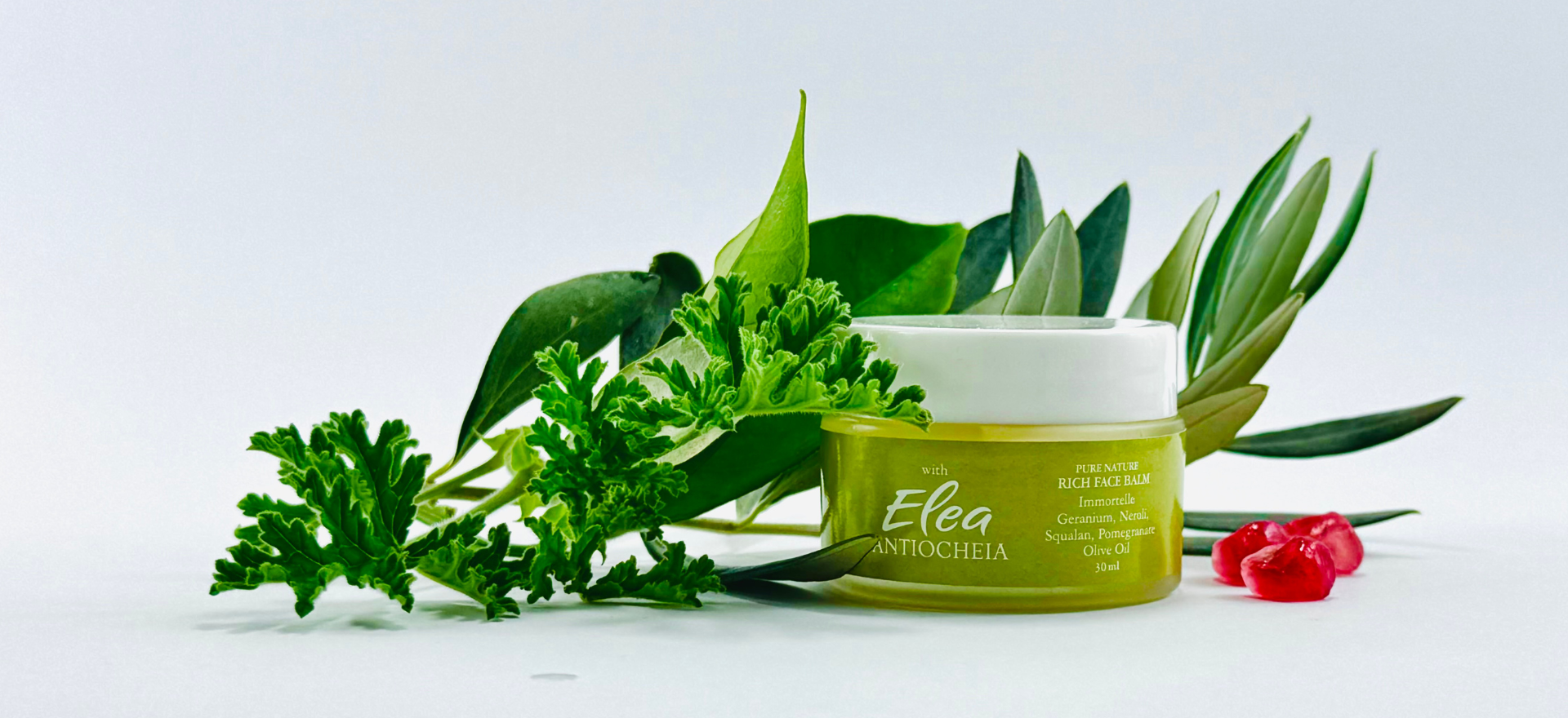 Yoğun cilt bakım yağının özelikleri, Zengin içerikli, vücut yağı, bakımı sağlayıcı, onarıcı ve hücre yenileyici, doğal sabit ve uçucu yağlardan oluşmaktadır. Yüksek fenolik özellikli, “Elea Antiocheia”extravirgin zeytinyağımızla hazırlanan Kırmızı ölmez otu masareti ve kullandığımız diğer sabit yağların, nar çekirdeği yağı, üzüm çekirdeği yağı, onarıcı güçlerinin yanı sıra, cilde hoş bir koku vermek ve bakım sağlayıcı gücünü artırmak için, Akdeniz’i güzel doğasını anlatan, aromatik bitkiler ile özel olarak hazırladığımız uçucu yağlar eklenmiştir.